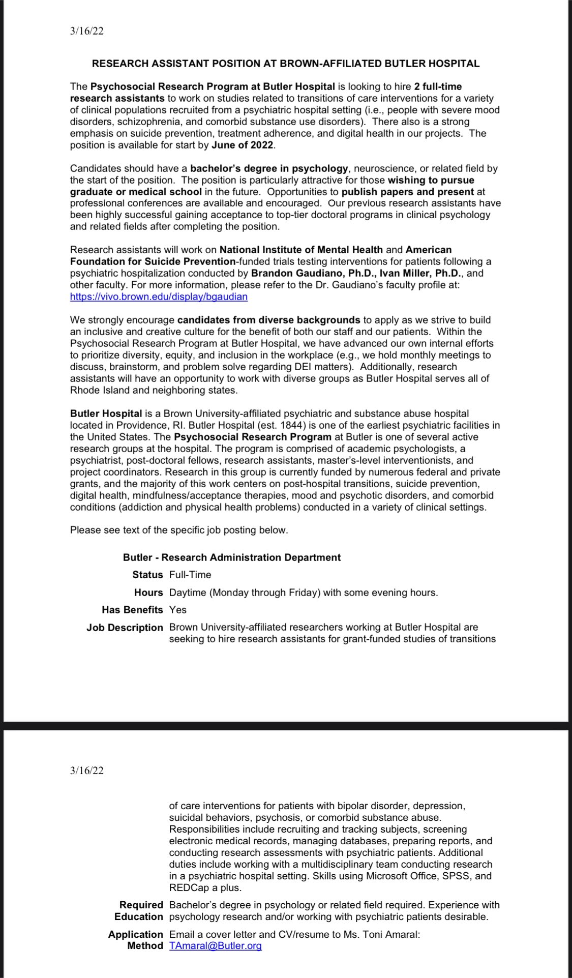 Ad Apply For Psychology Research Assistant Jobs Near You. New York State Psychiatry Institute.